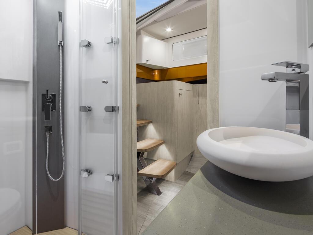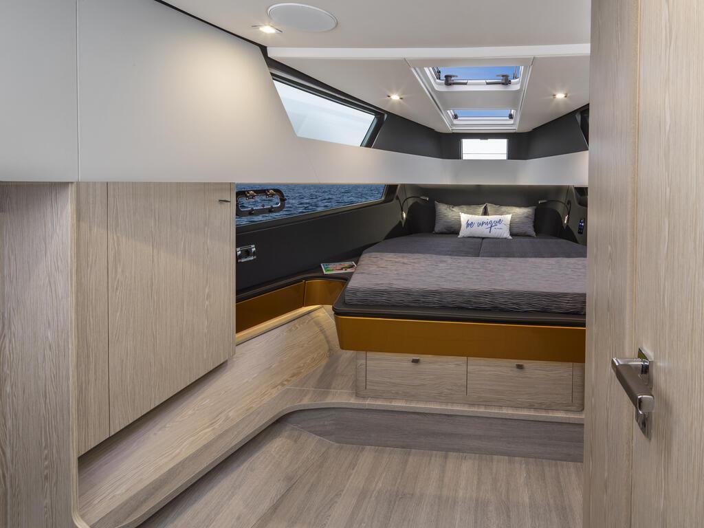 Csábító. Elbűvölő. Extravagáns. A FJORD mágnesként vonzza a tekinteteket. Minimalista, letisztult formája minden környezetből kitűnik, legyen az egy exkluzív kikötő vagy festői partvidék. Az ikonikus függőleges orr, a jellegzetes magas T-top és az erős perem kombinációja minden FJORD számára a függetlenség bátor kinyilatkoztatását adja, amely valóban magára vonja a figyelmet.